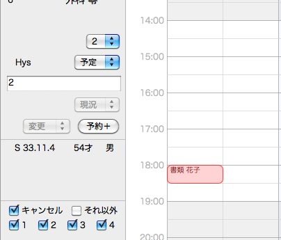 インターフェースの特徴からダブルブッキングなどを確認し難いのとアポイントとる度に種別を設定するのが難しい(忘れやすい)ので、種別は「医師」と「予防専属スタッフ」などのように独立性の高い種類を割り当てるのに適しています。